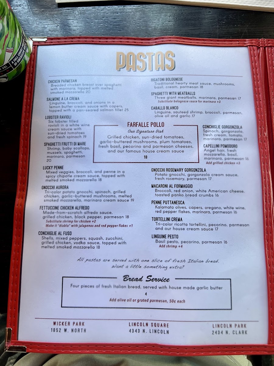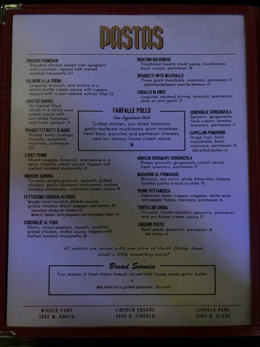 If you're in the mood for delicious pasta, then look no further than The Pasta Bowl - Lincoln Park Menu. Located in the heart of Chicago’s vibrant Lincoln Park neighborhood, this cozy spot offers a wide variety of Italian-inspired dishes, perfect for any craving. From classic spaghetti with marinara to rich, creamy alfredo, there’s something to satisfy everyone’s taste. Their handmade pasta dishes are crafted using the finest ingredients, ensuring every bite is full of flavor. Whether you're stopping by for a quick lunch or a laid-back dinner, The Pasta Bowl - Lincoln Park Menu will have you coming back for more with its comforting, hearty options. Pair your meal with a fresh salad or indulgent dessert to round out your experience.